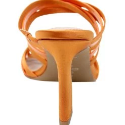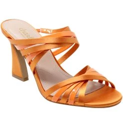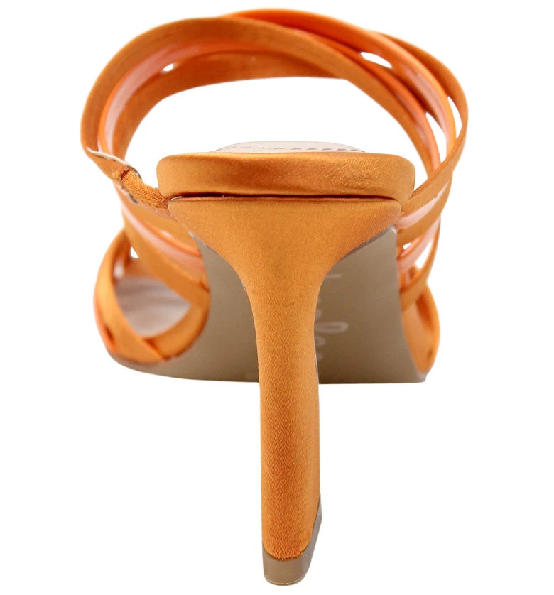 Thin straps adorn this easy to wear slide with a modern flared heel.Β true to sizeSatin/Patent Mango + Manmade Black-Silver, Nude-Lt GoldBlockRounded3.5 inch