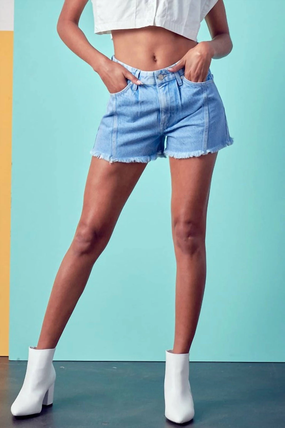 The “KanCan HighΓΒ Rise Frayed Hem Short” has a pleat detail on pocket with comfort level stretch, and frayed hem.ΓΒ Material – 100% cottonFeatures – Pleat detail on front pocket, frayed hem, zip fly, high riseFit – Inseam 3″Rise – 11″ΓΒ Model is wearing a size 3Color may vary depending on device