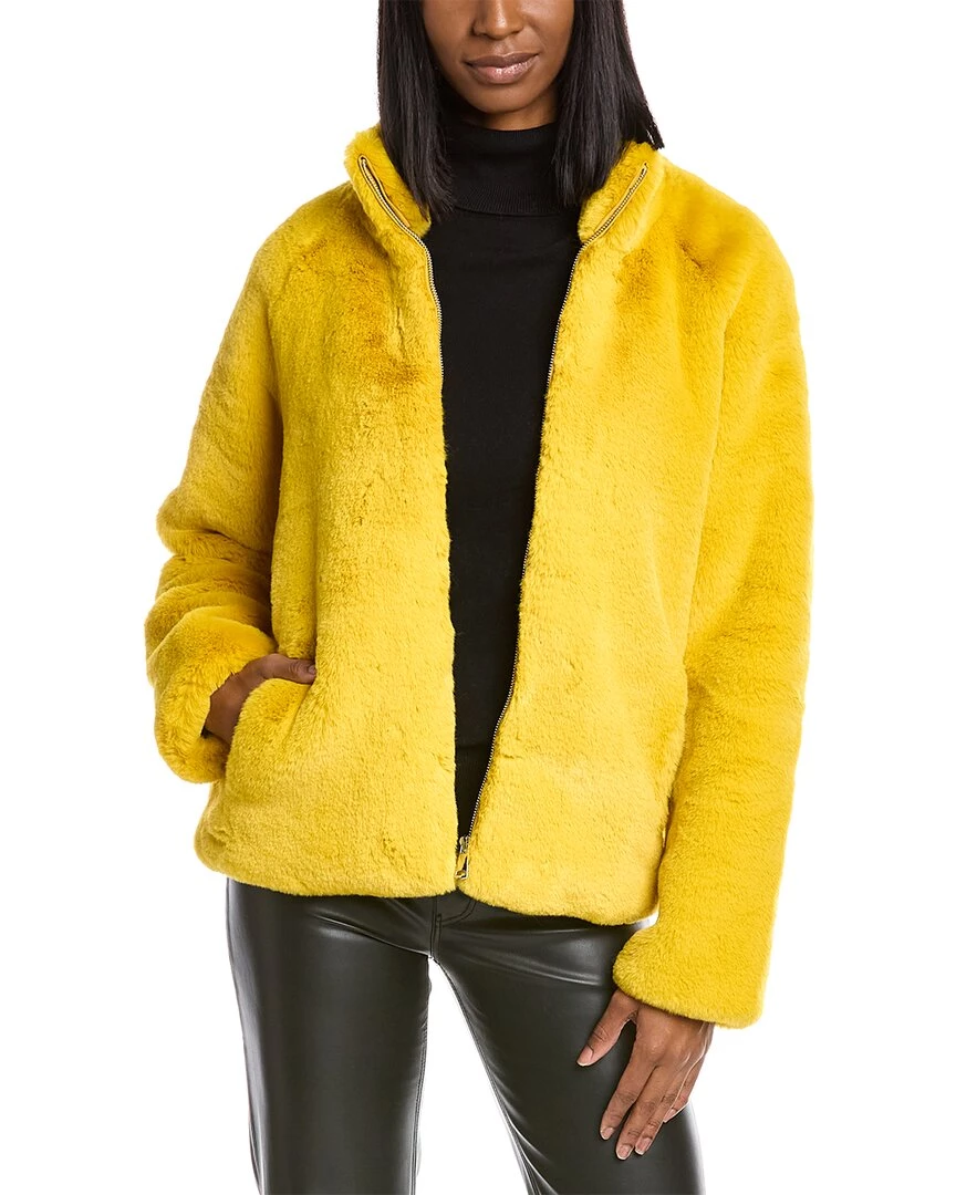 - Design Details – Faux Fur Design, Stand-Up Collar, Two Front Pockets