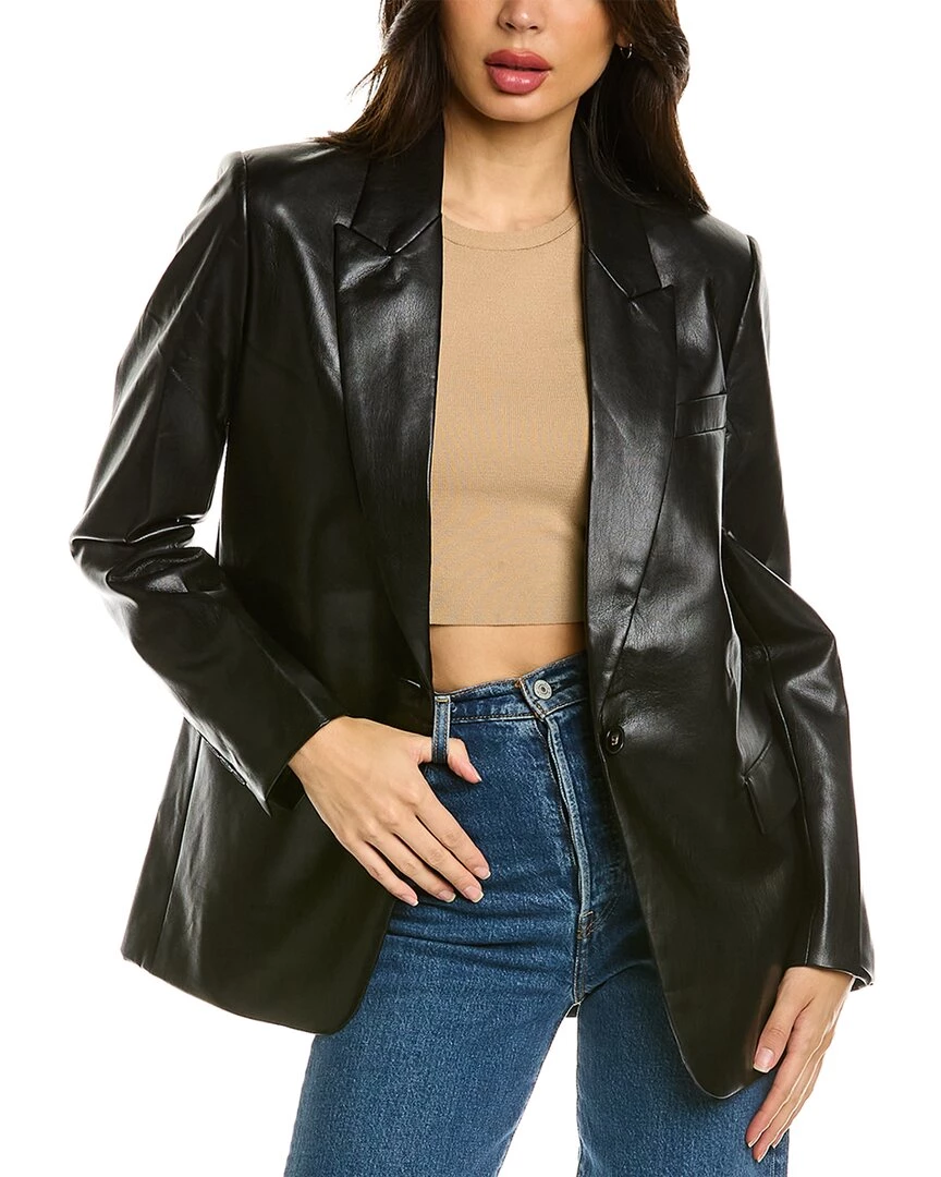 - Design Details – Faux Leather Design, Left Chest Pocket, Two Front Pockets, Non-Functional Button Cuffs, And Center Vent At Back Hem
