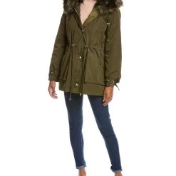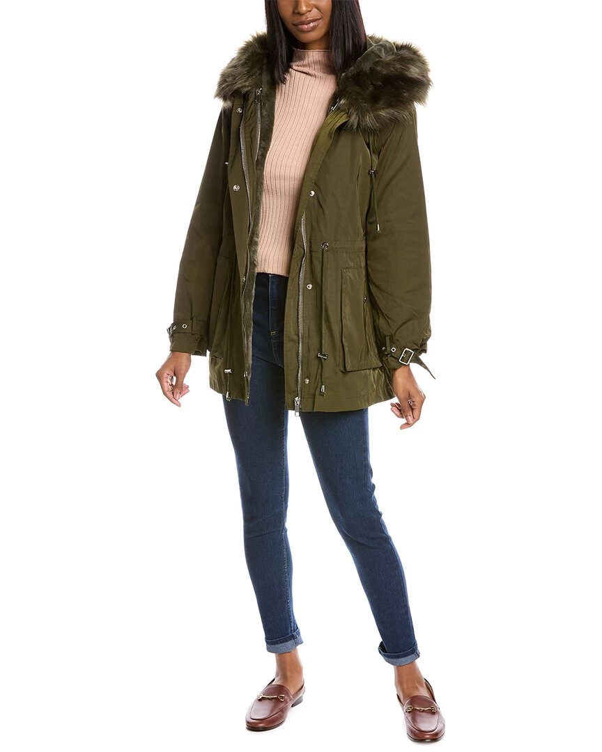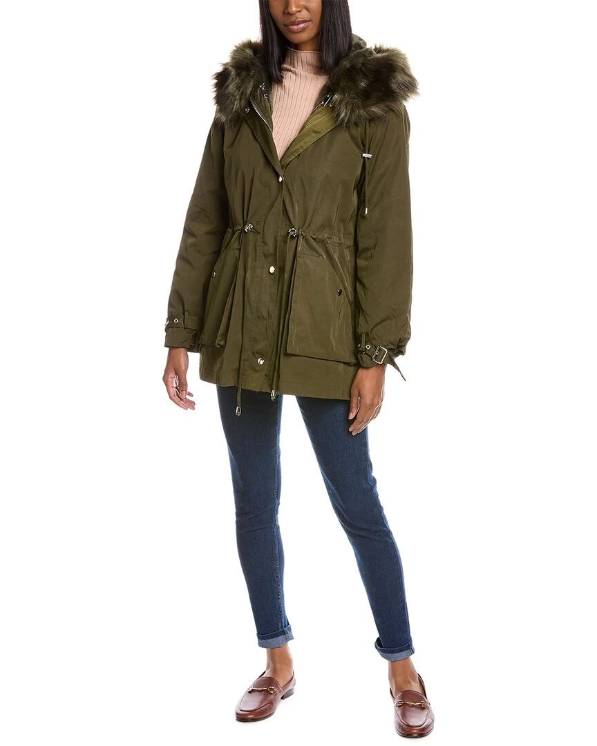- Design Details – Hooded Back, Removable Faux Fur Trim, Buckle Straps At Cuffs, Drawstring Waist, Two Front Pockets, Removable Faux Fur Lining