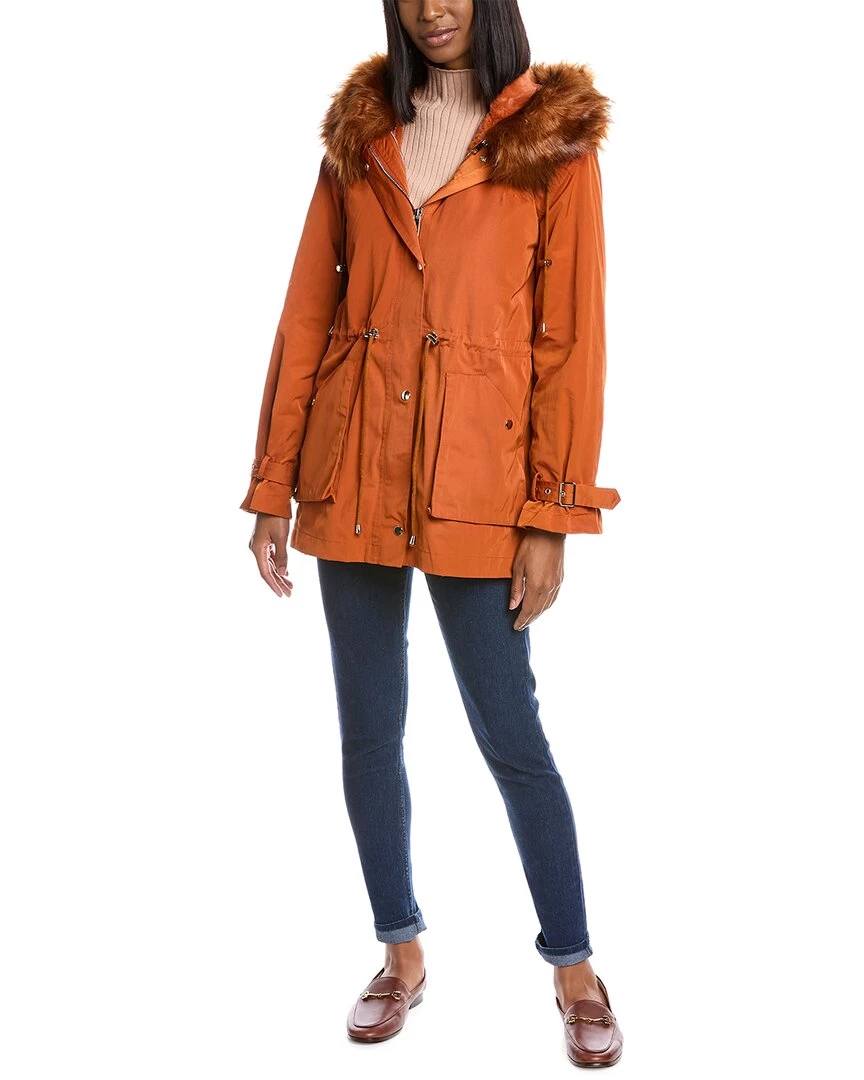 - Design Details – Hooded Back, Removable Faux Fur Trim, Buckle Straps At Cuffs, Drawstring Waist, Two Front Pockets, Removable Faux Fur Lining