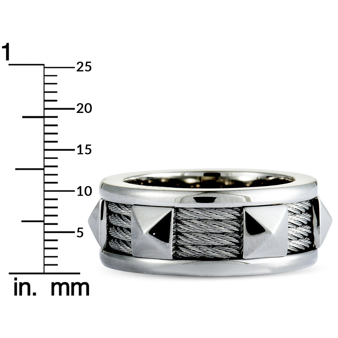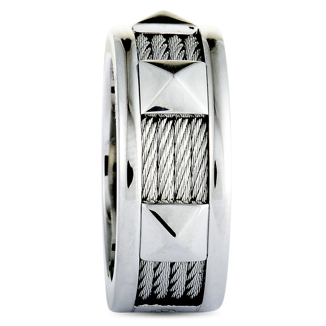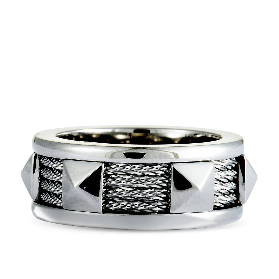 Boasting expertly crafted studs that attractively accentuate the intriguing cable motif, this superb ring that is presented by Charriol offers a distinctly masculine look. The ring is made of stainless steel and weighs 12.8 grams.