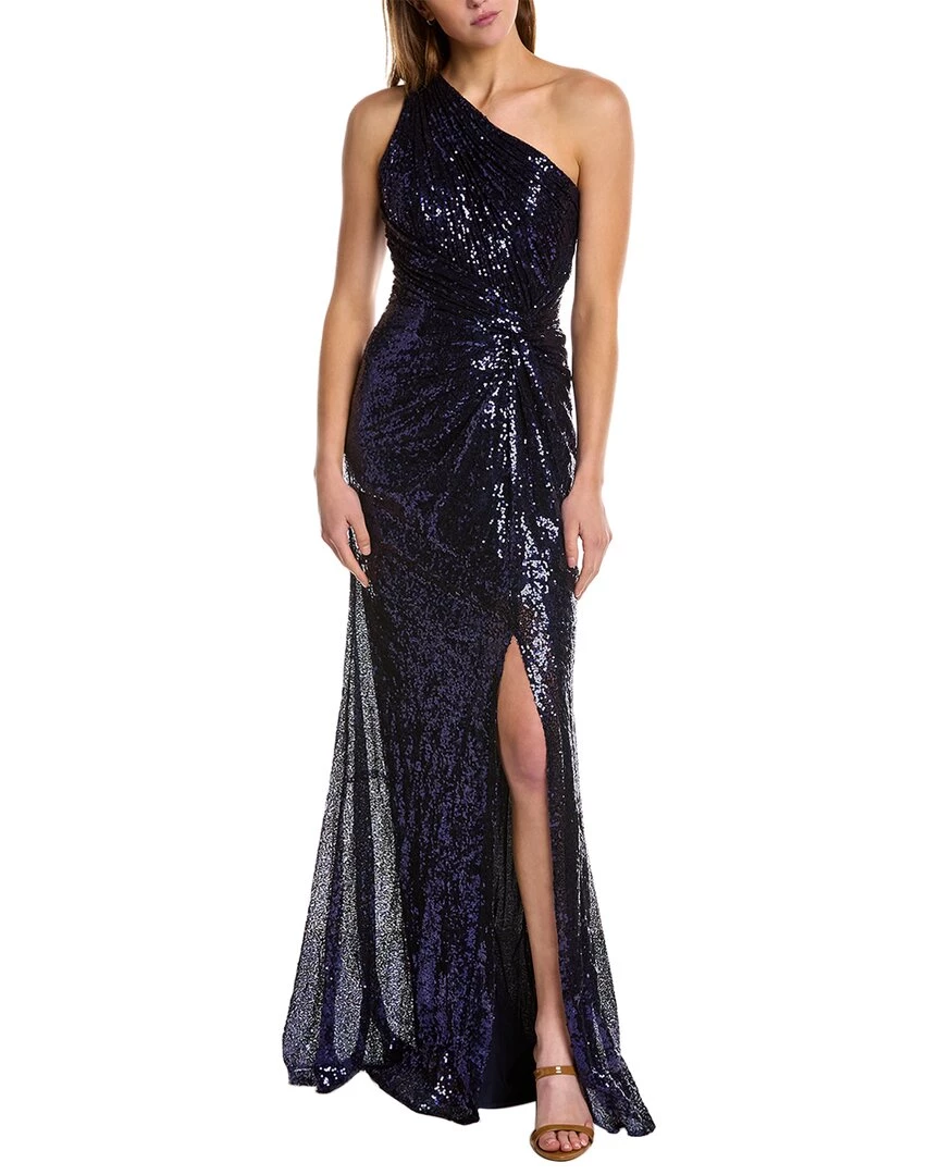 - Design Details – Sequined One-Shoulder Style, Ruched Bust, Twisted Left Waist, And Thigh Slit At Front Left Seam