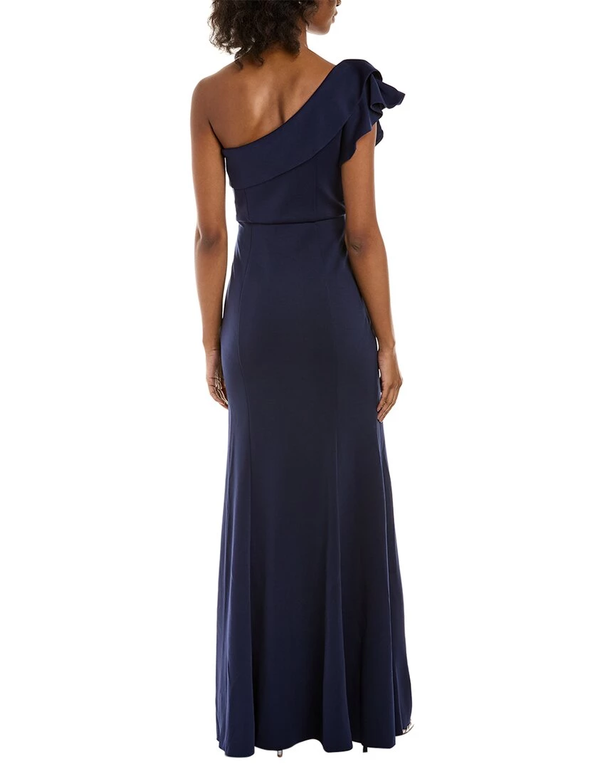 - Design Details – One-Shoulder Neckline, Leg Slit At Right Seam